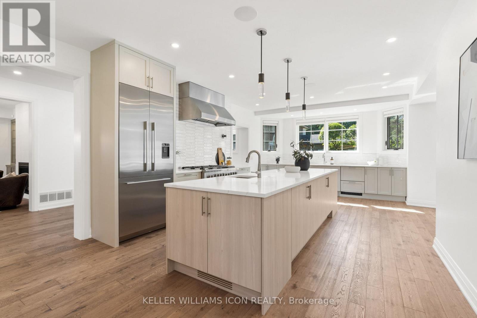 Former French State ResidenceMeticulously rebuilt in 2019 by luxury builder Gemstone in collaboration with architect Barry J. Hobin. Every detail was carefully considered, with all-new materials and enhanced insulation behind the walls. Features include custom vintage-style windows, integrated central speakers, heated floors, smart-home wiring, premium white oak flooring, marble finishes, and exquisite custom millwork.The chefs kitchen boasts commercial-grade appliances, an oversized island, and generous workspace. A separate living area with balcony enhances functionality and privacy. Upstairs, two ensuite bedrooms offer comfort and style. The primary suite features a spa-inspired bath with heated floors and integrated speakers. A dream-sized laundry room adds everyday convenience.The third floor offers two spacious bedrooms and a full bath, supported by a dedicated furnace for heating and cooling. The lower level provides a cozy family room and ample storage.Outdoors, enjoy a two-level patio designed for entertaining. The home sits on a flat corner lot with a deep front yard, an extended driveway, and future potential for a garden or pool. A professional landscape design is already prepared for the next owner to bring to life.This residence is a rare opportunity where heritage meets luxury. (id:2469)