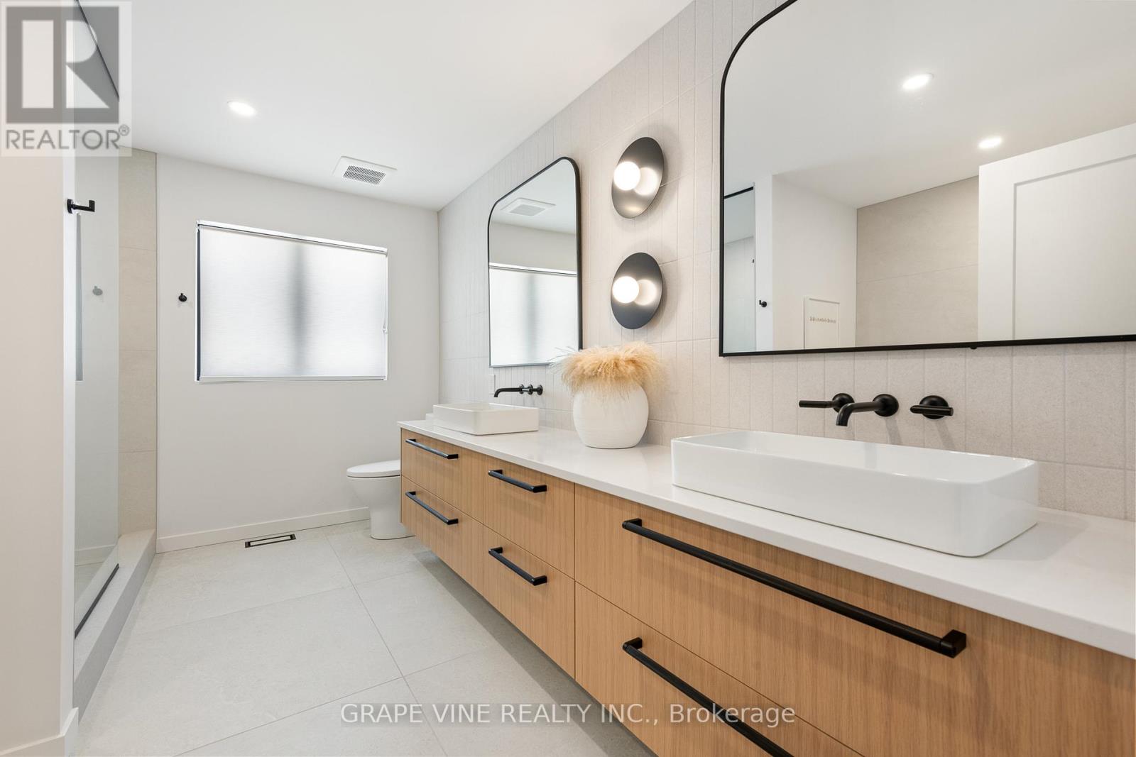 Built by custom luxury builder of the year award winner, this extraordinary 5 bedroom, 5 bathroom residence showcases refined craftsmanship on a mature, tree-lined lot in one of Ottawa's most coveted central neighbourhoods. Over 4,000 square feet of thoughtfully designed living space where luxury and livability converge seamlessly. Enter through a two-storey foyer into an open-concept layout anchored by a stunning family room with soaring double-height ceilings, statement gas fireplace, and floor-to-ceiling windows. The chef's kitchen features a generous island, walk-in pantry, and custom Cedar Ridge millwork with quartz countertops. A private main-floor office offers work-from-home versatility. Upper level - four generously proportioned bedrooms including a sun-drenched primary suite with spa-inspired ensuite. A second bedroom with dedicated ensuite, two additional bedrooms, third bathroom, and convenient second-floor laundry complete the level. Lower level - finished basement with fifth bedroom, full bathroom, and expansive recreation room ready for your lifestyle. The details - french oak hardwood, custom tilework and lighting, Pella triple-pane fibreglass windows. Every finish carefully curated. Your private oasis - professionally landscaped backyard with heated saltwater pool, TREX decking, and mature trees creating natural privacy. EV-ready with charger wiring. Minutes from downtown, hospitals, and key amenities-luxury living with true convenience. (id:2469)