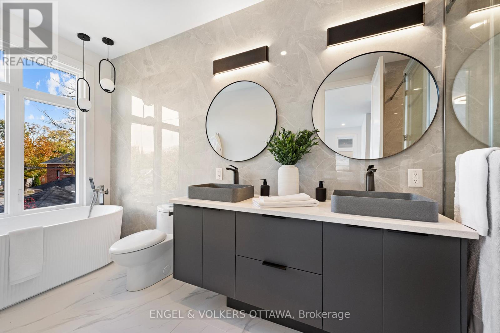 Welcome to 493 Highcroft Avenue, a brand-new, never-lived-in-before detached home located in the heart of Westboro. This elegant residence has premium finishes, a heated driveway, a rough-in for an EV charger, and high-efficiency systems. This home offers an unparalleled lifestyle surrounded by top-rated schools, parks, local cafes, & boutique shopping. Step inside through the bright entryway with heated floors to the airy main level, where wide-plank hardwood flooring flows seamlessly throughout the living space, complemented by 9-foot ceilings. The welcoming foyer features heated floors & a convenient powder room. A stunning floor-to-ceiling charcoal tile gas fireplace & luxurious floating staircase anchors the living room, along with expansive picture windows which frame the landscaped backyard, creating a perfect backdrop for everyday living and entertaining. The gourmet kitchen is a chef's dream, boasting flat-panel cabinetry, sleek, premium stainless steel appliances, and an island with a built-in sink and dishwasher. Upstairs, the primary suite offers treetop views, heated floors, and an en suite featuring a double vanity with vessel sinks, a glass shower, and a soaker tub. Three additional bedrooms with oversized windows and a second full bathroom with a floating vanity and glass-enclosed tub and shower provide comfort and convenience for family living. A dedicated laundry room on this level adds practical ease to daily routines. The fully finished lower level, with heated floors, extends the home's living space and features a bright room with recessed lighting and deep windows. A versatile bedroom, a three-piece bathroom with a frameless glass shower, and a storage area complete this level. This brand-new, never-lived-in home is move-in ready, offering a rare opportunity to own a stunning residence in one of Ottawa's most desirable communities. (id:2469)
