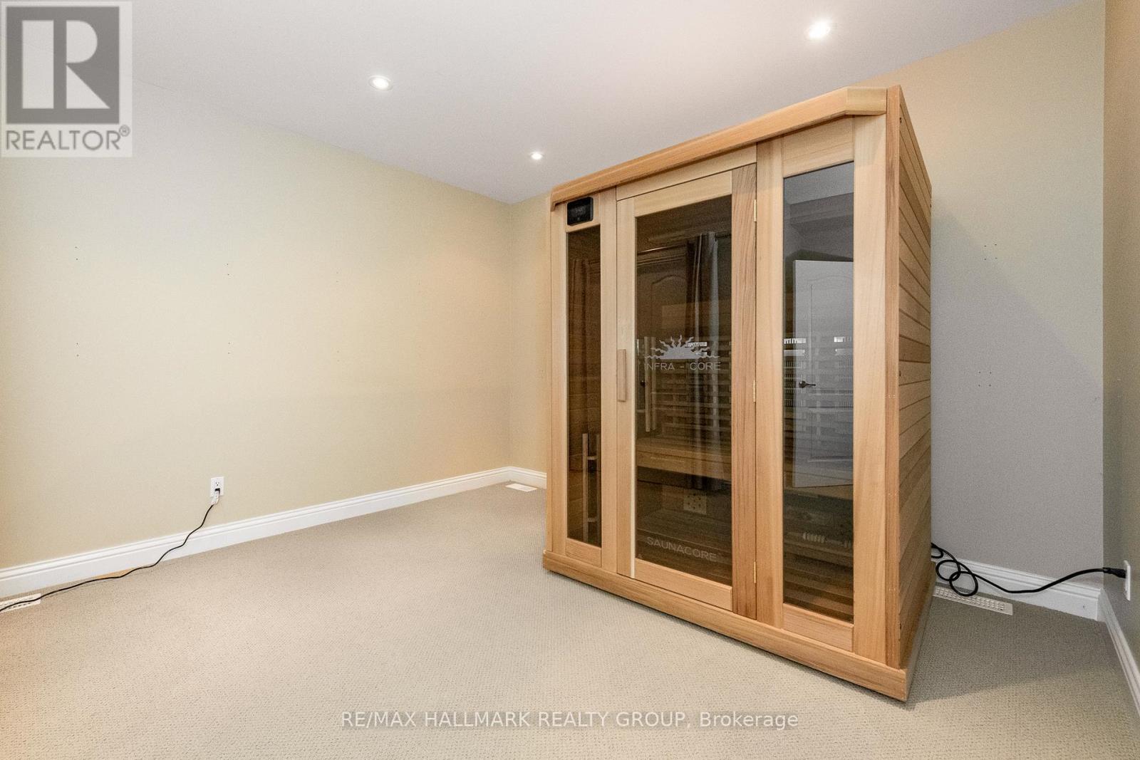Set on a beautifully treed 2.12 acre estate lot in prestigious Rideau Forest, this elegant Nowaki-built residence offers exceptional privacy, timeless design, and impressive curb appeal. A grand foyer welcomes you inside, where soaring two-storey windows flood the formal living room with natural light and highlight a cozy gas fireplace, creating an immediate sense of scale and warmth. The thoughtfully designed main level blends everyday comfort with upscale finishes. A private primary suite is positioned on one side of the home, featuring a generous walk-in closet and a luxurious 5pc ensuite with double sinks, a soaker tub, and an open walk-in shower with rain head. At the heart of the home, the chef's kitchen showcases rich cabinetry, stone countertops, high-end built-in appliances, and a large centre island, seamlessly connecting to the family room with wood-burning fireplace and tranquil views of the backyard retreat. Upstairs, the secondary bedrooms offer exceptional comfort and versatility. Two feature expansive balconies overlooking the private backyard, while another enjoys its own front-facing balcony. Two bedrooms include walk-in closets, and one benefits from a private 4-piece ensuite, providing ideal accommodations for family or guests. The fully finished lower level is designed for entertaining, complete with a bar, home theatre area, billiards room, sauna, 2pc bath, and direct access to the garage. Outside, enjoy resort-style living with a luxurious in-ground saltwater pool surrounded by mature trees for ultimate privacy. In addition to the attached garage, a separate detached garage provides extra parking, storage, or workshop potential, with an expansive driveway accommodating numerous vehicles. Located in one of the region's most sought-after estate communities, this remarkable property offers a rare combination of space, privacy, and refined living just minutes from city amenities. (id:2469)