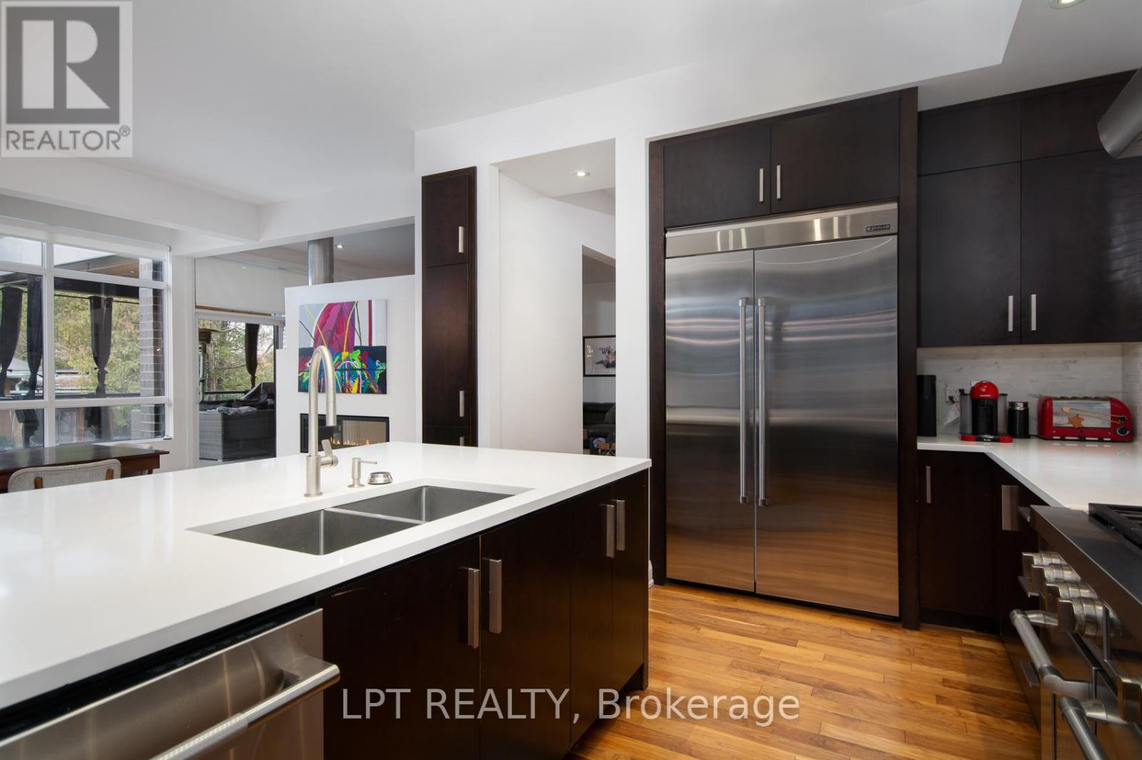 Custom-built modern smart home offering exceptional design, technology, and lifestyle. This 13-year-old residence is meticulously maintained and loaded with premium upgrades throughout.The open-concept layout features soaring ceilings, large custom Marlboro double-pane windows, maple walnut hardwood flooring on the main and second levels, and a sleek 52-inch linear fireplace. The chef-inspired kitchen showcases solid oak custom cabinetry by Chris Graham, granite and Caesarstone countertops, a walk-through pantry, oversized 48-inch fridge/freezer combo, and a 48-inch dual oven gas range with griddle, all complemented by JennAir Pro appliances.The fully finished basement is designed for entertaining with heated floors, a full secondary kitchen, wine room, additional bedroom, 3-piece bath with glass shower, electric fireplace, and a dedicated theatre featuring a 120-inch screen, BenQ projector, 7-speaker surround system, and dual 10-inch Paradigm subwoofers.Smart living is seamless with full Control4 automation, smart thermostats, programmable lighting, integrated audio, CAT-wired networking, mesh Wi-Fi with outdoor access point, Ring doorbell, Hik-connect security cameras, RainBird irrigation, and smart garage access.Outdoor living shines with three distinct spaces including a covered patio with wood fireplace, TV and speakers, open deck with remote awning, pergola, fully fenced pool area, interlock landscaping, retaining walls, LED lighting, and natural gas BBQ line.Additional highlights include a Trevi Europa 10x24 pool, oversized double garage, dual owned water heaters, high-efficiency HVAC, air exchanger, backup sump system, and central vac. Recent updates include AC (2024), dishwasher (2024), basement appliances (2024), and washer/dryer (2025).A rare opportunity to own a fully integrated modern home built for comfort, entertaining, and everyday luxury. (id:2469)