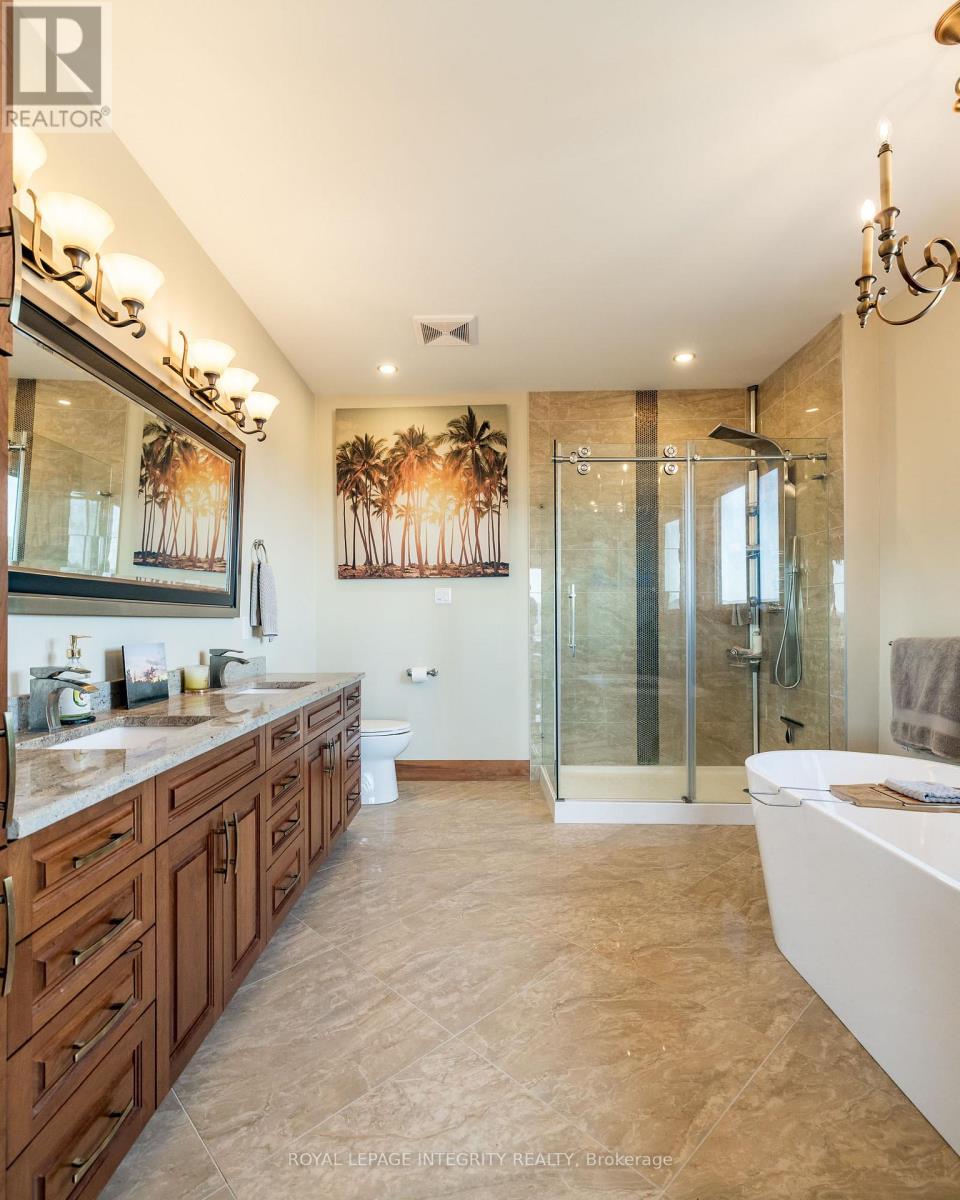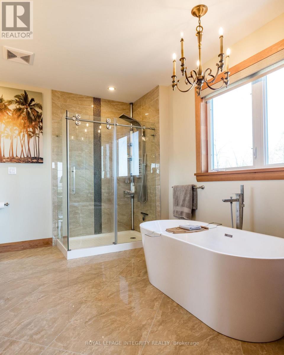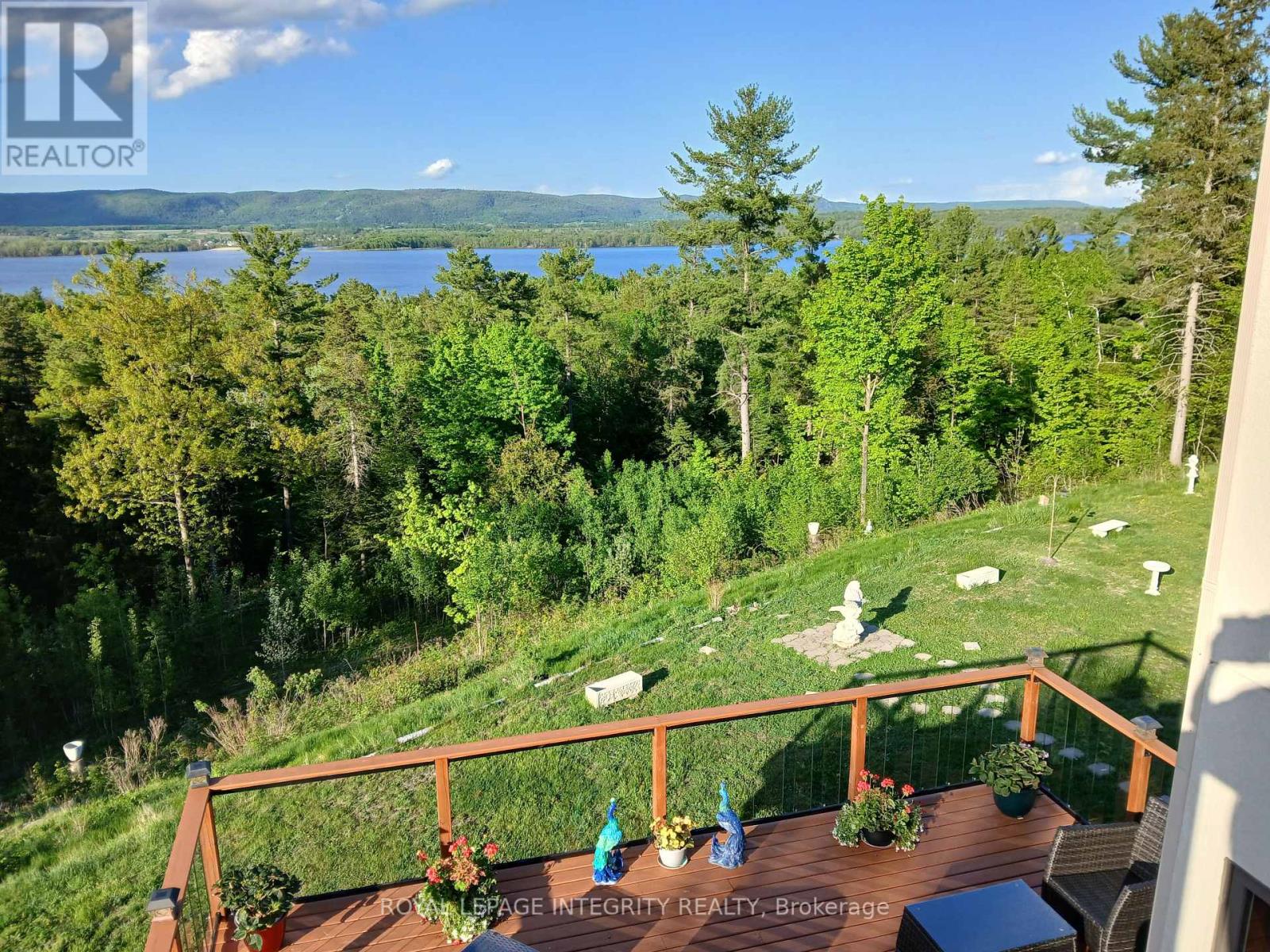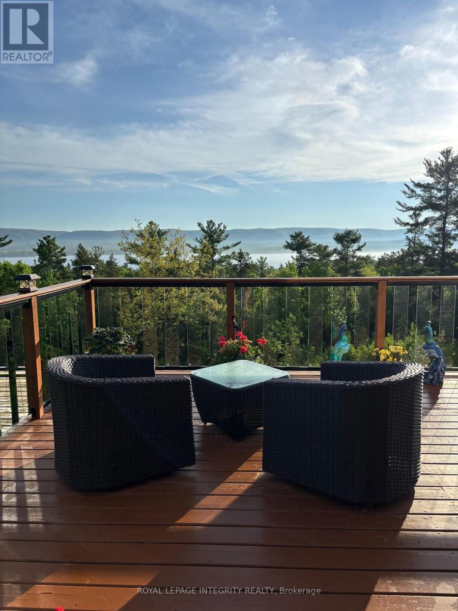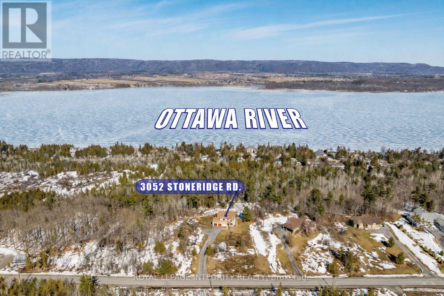 Incredible panoramic views of the Ottawa River Valley and Gatineau Hills!Custom built in 2019 in Dunrobin Shores, this open-concept 3-bedroom + den home sits on just under 2 acres atop a ridge, only 3 minutes from a beach and Ottawa River boat launch. There's also the opportunity to expand into an estate-sized property with the adjacent 11.7 acres (135 ft frontage on Stoneridge Rd) offered at $800,000.The living room features a soaring 20-ft ceiling and expansive triple-glazed windows across two levels. All other areas, including the den, chef's pantry, and walk-out basement, offer 9-ft ceilings. Upstairs you'll find three bedrooms, including a spacious primary retreat with a stunning view, walk-in closet, and luxurious ensuite.High-end finishes throughout include Laurysen solid cherry cabinetry, granite in the kitchen, baths, and mudroom, hand-scraped solid acacia hardwood, Italian tile in wet areas, and stainless steel appliances.Enjoy outdoor living with a large raised deck off the kitchen and a private balcony off the primary suite - a true Canadian dreamscape.Additional features: Granite island seating 8 comfortably (10 in a pinch) Soft LED lighting throughout Enhanced interior wall insulation for soundproofing Stained white pine trim and interior doors Napoleon propane fireplace High-efficiency Napoleon propane furnace + electric heat pump Oversized well pump for strong, reliable water supply Water softener + reverse osmosis system Extra-large septic system with basement bath rough-in (future apartment potential) Stone and stucco exterior Large front porch and rear deck Lightning rods, hurricane clips, whole-home surge protector, alarm system Portable generator with quick connect Two fire pits and tranquility garden Walking paths with abundant wildlife on the propertyJust 7 minutes to Port of Call Marina and 15 minutes to Kanata - peaceful country living with city convenience. (id:2469)