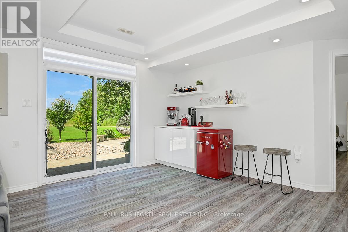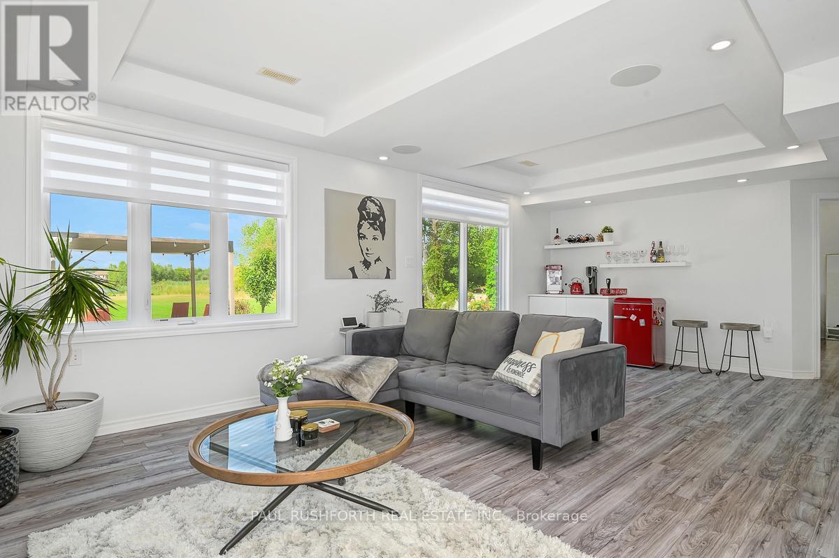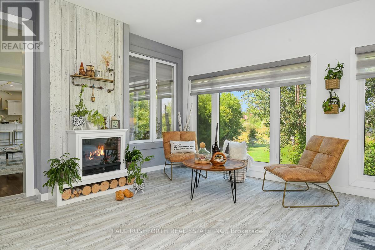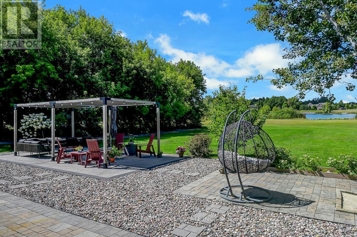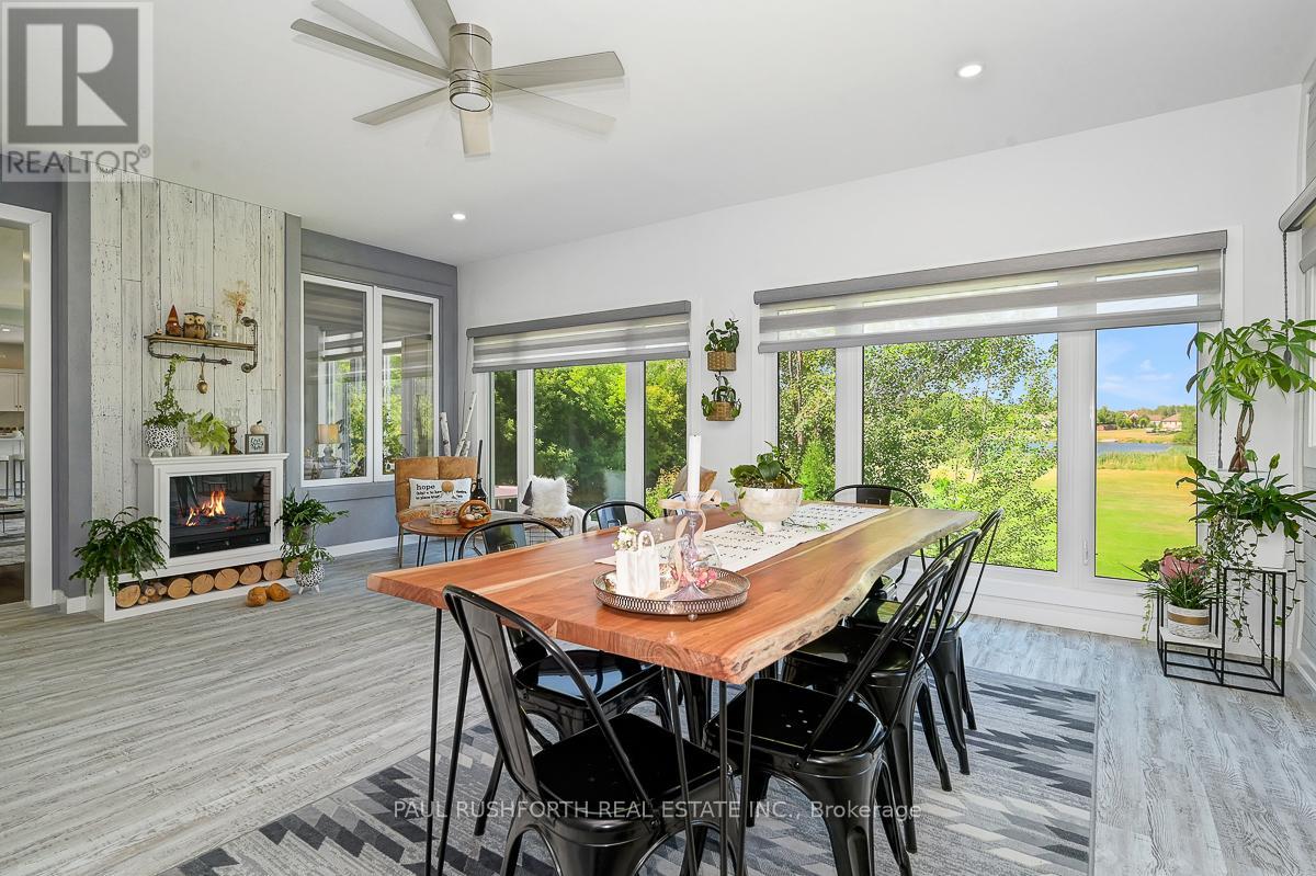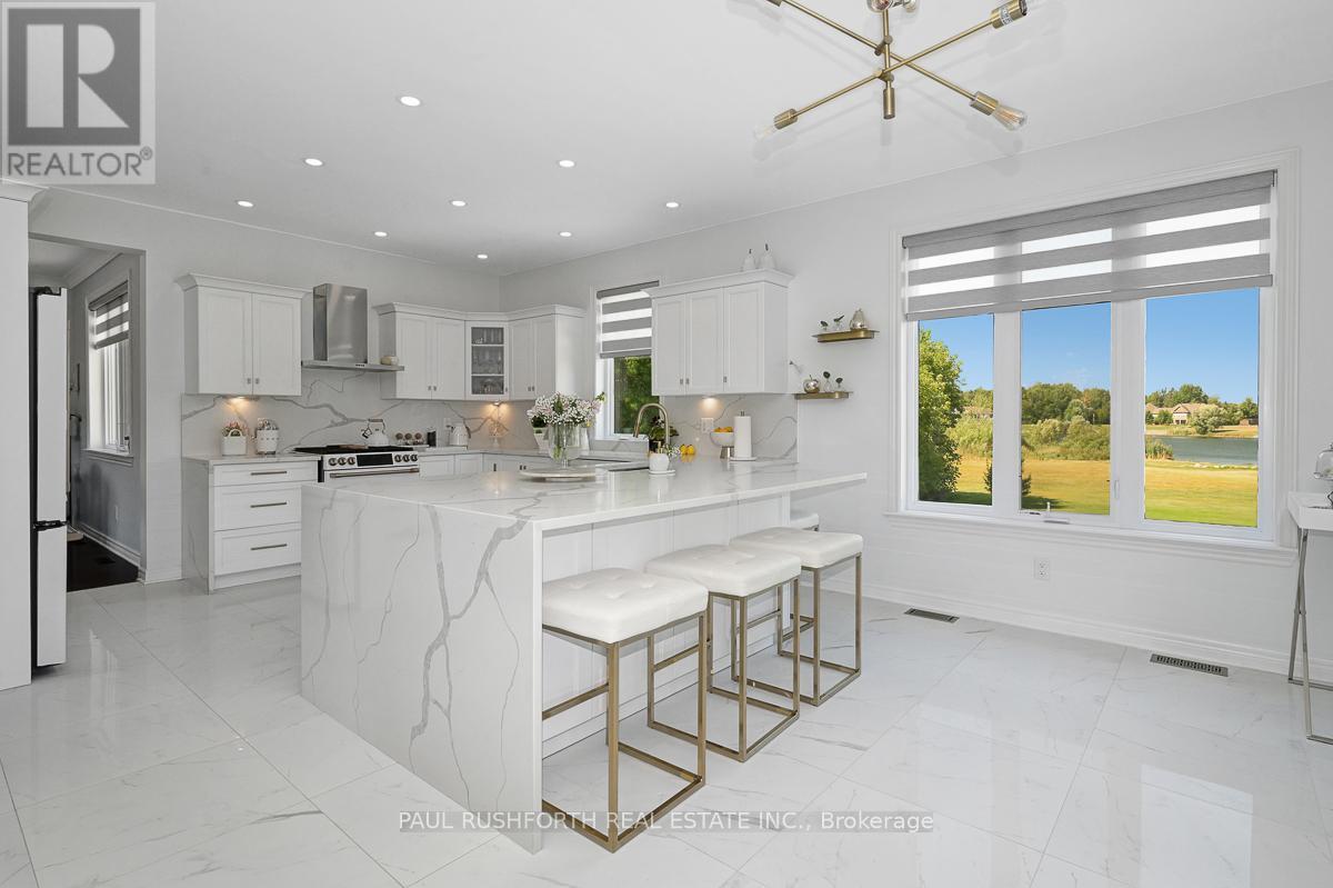 Experience the ultimate in waterfront living with this exceptional 5 bedroom, 5 bath residence set on a private 2.3 acre lot with over 120 feet of direct lake frontage in sought after West Lake Estates. Offering rare year round access to the water, this property delivers a lifestyle that is peaceful, private, and just minutes from the city. Perfectly located only 10 minutes from Kanata's tech hub, shopping, and dining, and just 5 minutes to Highway 417 for an easy downtown commute. Custom built in 2010 and offering approximately 5,000 sq ft of finished living space, this residence has been extensively upgraded with over $500,000 in renovations, blending timeless craftsman design with refined modern finishes. The main level showcases its waterfront setting with expansive living and dining areas, oversized windows, and stunning lake views. The chef's kitchen features Calcutta quartz counters and backsplash, white shaker cabinetry, oversized peninsula, and high end appliances. A bright breakfast area and inviting family room with gas fireplace flow into a sun-filled three season room with panoramic lake views. A dedicated office, oversized mudroom, and convenient laundry with garage access complete this level. Upstairs, three suite style bedrooms offer comfort and privacy, including a primary retreat with tranquil views and a spa inspired ensuite with freestanding tub, dual vanities, and glass walk in shower. The fully finished walkout lower level adds two bedrooms, a full bathroom, recreation space, and ample storage. Outdoors, enjoy landscaped grounds with mature trees, stone patio, pergola, fruit-bearing orchard, and direct lake access perfect for relaxing or entertaining. Additional features include a three car garage, 10 zone sprinkler system, GenerLink wiring, 40amp EV receptacle, new furnace, A/C, owned water heater, and epoxy-coated porch. Annual co-tenancy fee of $100 covers lake maintenance. (id:2469)