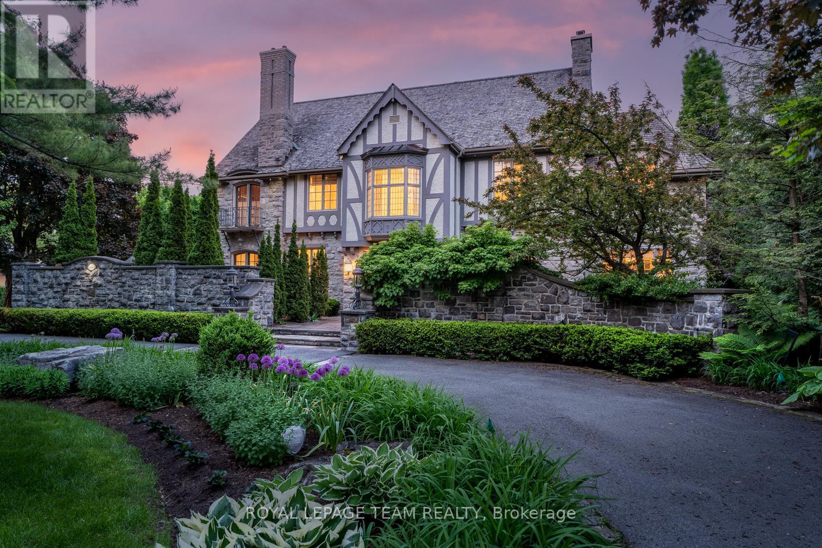Ottawa's prestigious Rockcliffe Park neighborhood offers a rare opportunity to experience one of its most esteemed and historic mansions, 480 Manor Avenue. Nestled on a spacious, treed corner lot in the heart of the Old Village, this stately home was built in 1937 and combines beautiful stone, wood, glass, and copper elements, showcasing stunning architectural details throughout. The private courtyard, enclosed by a low stone wall, adds an extra layer of seclusion and old-world charm. Restored and renovated in 2016 by one of Ottawa's top design firms, this luxurious home effortlessly blends original craftsmanship with modern design. Natural light pours through expansive windows and custom treatments, while high ceilings are adorned with antique chandeliers and recessed lighting. Radiant heat ensures warmth and comfort throughout. The main floor features a sunken living room with a gas fireplace, a sophisticated dining room, a home office, and a custom kitchen with high-end appliances, including a Thermador 6-burner gas range and Sub-Zero fridge. Adjacent to the kitchen is a spacious family room, perfect for relaxing or entertaining. The second and third floors includes a luxurious primary suite offers a private balcony, two dressing rooms, and an ensuite with a steam shower and soaking tub. Five more spacious bedrooms, two spa-style bathrooms, and a second home office. Exercise from home in a large and invigorating home gym, with loads of natural light. The lower level features an entertainment room, a temperature-controlled wine cellar, hobby room and ample storage space. The property's backyard oasis is perfect for outdoor living, with patios, an inground pool, hot tub, and heated pathways leading to three outdoor sheds. Located in one of Rockcliffe Park's most tranquil enclaves, the home is within walking distance of top schools, parks, and Beechwood Village. With easy access to downtown and the Byward Market, this is an unparalleled living opportunity. (id:2469)