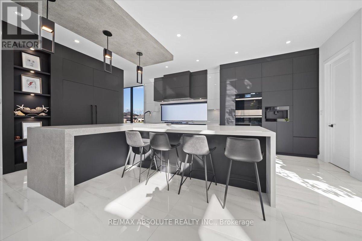 Ultimate curb appeal! EVERY aspect of this home has been artistically crafted by a one of a kind visionary! There is NOTHING that compares to his STUNNING masterpiece. State of the art technology can be found in this "smart" home! Italian tile & 8" hardwood throughout This home has formal & unformal spaces throughout- easy living & room for a large family! 18 foot ceilings on the main level! The kitchen is WAY nicer in person, ONLY the TOP of the line materials were used, a TRUE Chef's kitchen with built in appliances & panelling- NO expense spared!! So many statement pieces on every level! There was NO budget for the abundance of windows in this home! Over 6000 SF of glamorous square footage! The great & living room share a 2 sided fireplace! Float to the landing on the open staircase & you will find an office surrounded by glass! The PRIMARY offers 2 closets & the bath is SPA inspired AND OUT of this world. MUST BE SEEN! The 2 additional bedrooms offer GORGEOUS ensuites! Home theatre with LUX leather seats, a FULL gym, family room, 4th bed & FULL bath complete the EXCEPTIONAL lower level! Matched beauty inside & out! The same level of finishes can be found in the backyard sanctuary! 10 foot garage doors, garage parking for 4. Security system- this home has MORE than you wanted! Instant community as you have access to the community pool, beach & community centre! 10/10 (id:2469)
