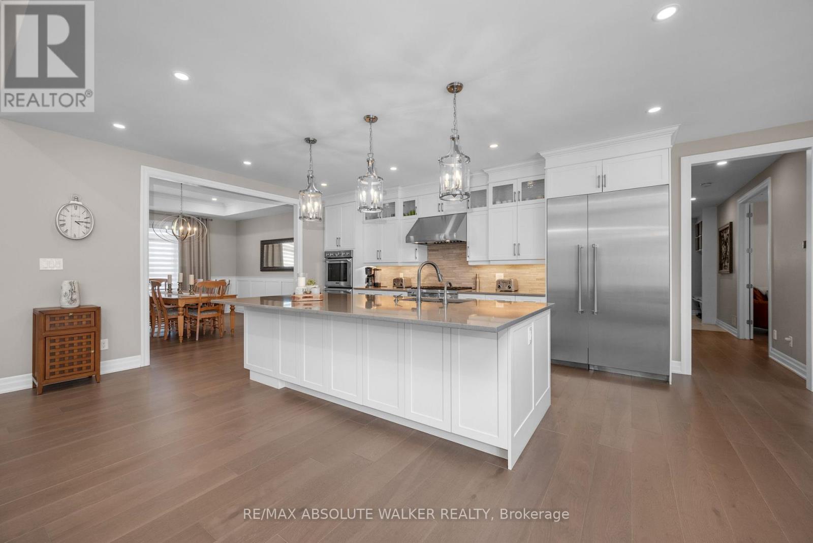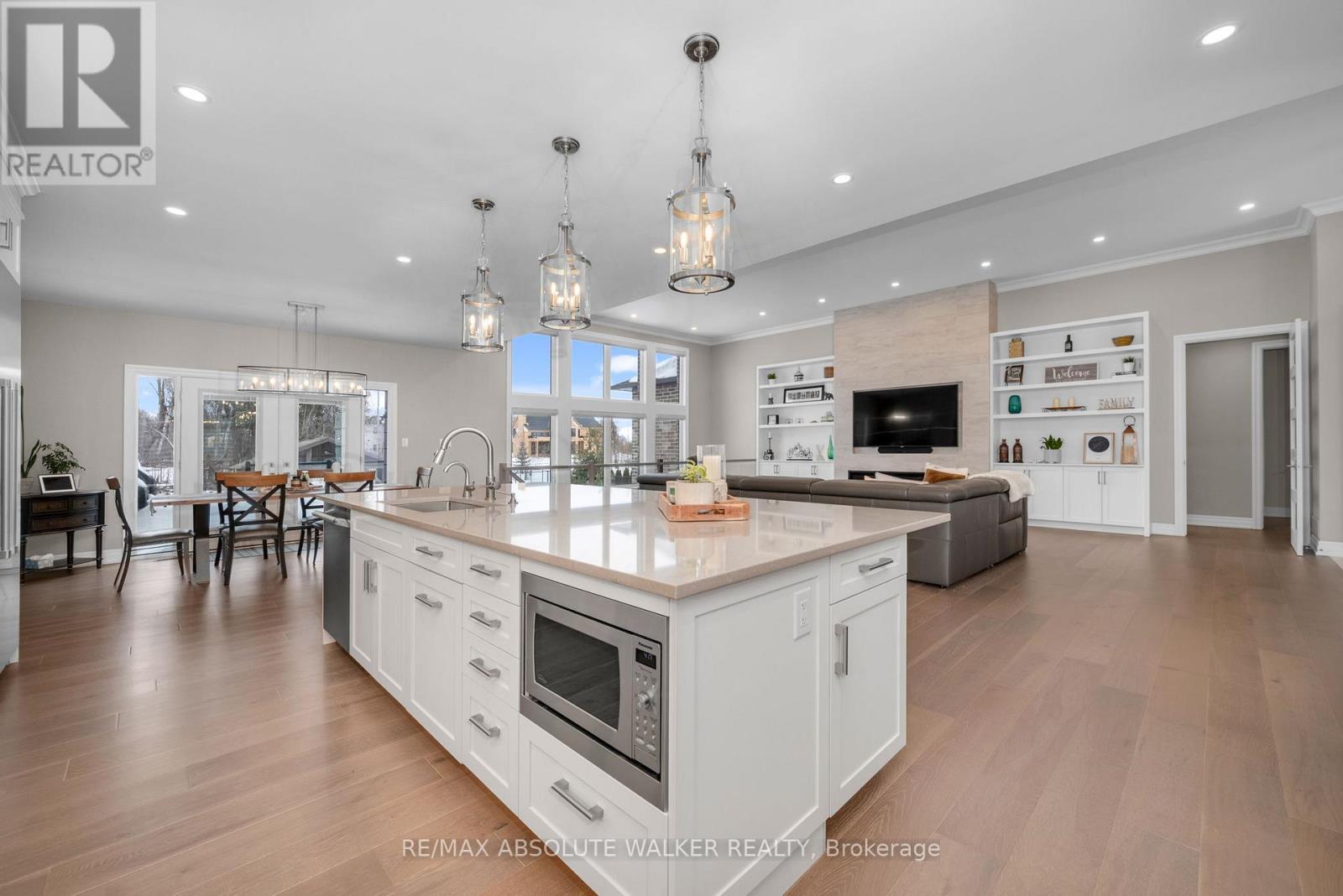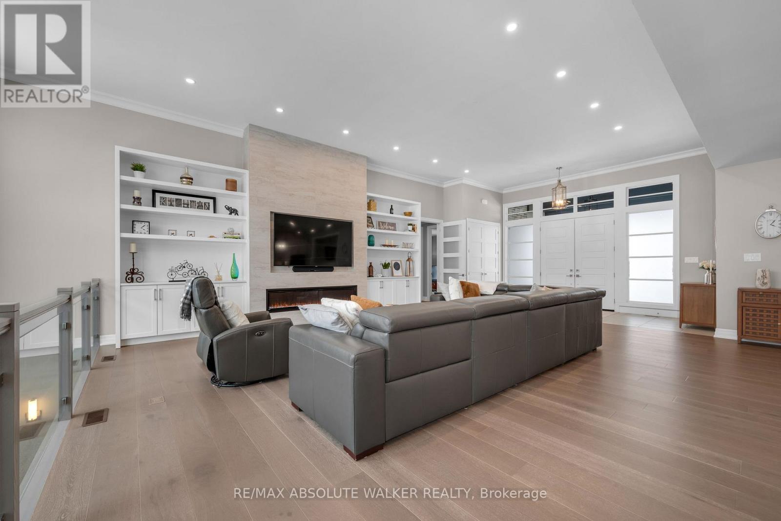 Step into this stunning custom John Gerard bungalow, featuring an expansive 3400 sqft of main-floor living space, enhanced by over 2000 sqft of beautifully finished basement. Exuding luxury and sophistication, this full brick residence is adorned with high-end finishes throughout. The main floor showcases, timeless trim work, elegant hardwood floors, tile, and soaring ceilings ranging from 9 to 12 feet, contributing to the home's grand ambiance. A fully functional main floor laundry room and pantry room offer convenience, while four spacious bedrooms (one currently used as an office) on the main level, along with a fifth bedroom and full washroom in the basement, accommodate families of all sizes.The gourmet kitchen is a culinary delight, equipped with top-tier Thermador appliances, soft-close drawers, and cupboards, and adorned with sleek quartz countertops in the kitchen and all washrooms. The basement is an entertainer's paradise, boasting a large recreation room, wet bar, billiards area, full gym (easily convertible to a sixth bedroom), and ample storage space with direct access to the triple-car garage. The property is situated on an oversized 1.1 acre lot, larger than neighboring properties, and includes a wooded area that ensures privacy and seclusion. This exceptional property perfectly combines style, comfort, and functionality, making it an ideal place to call home. (id:2469)