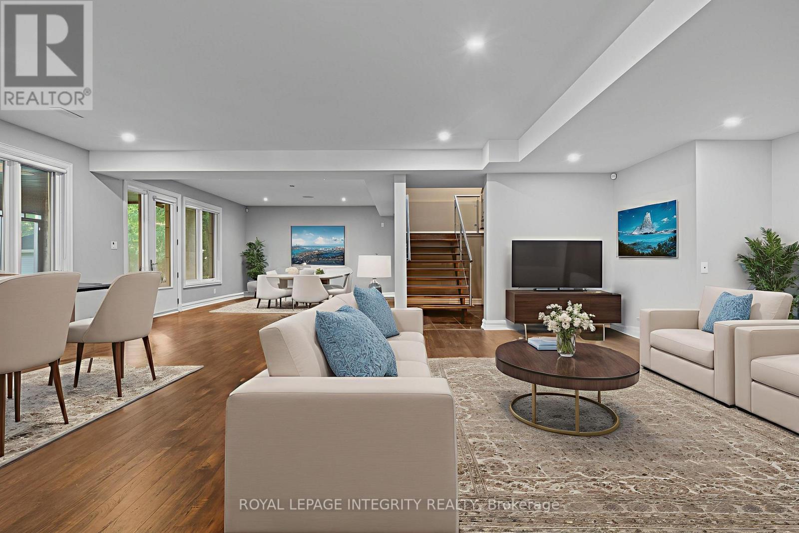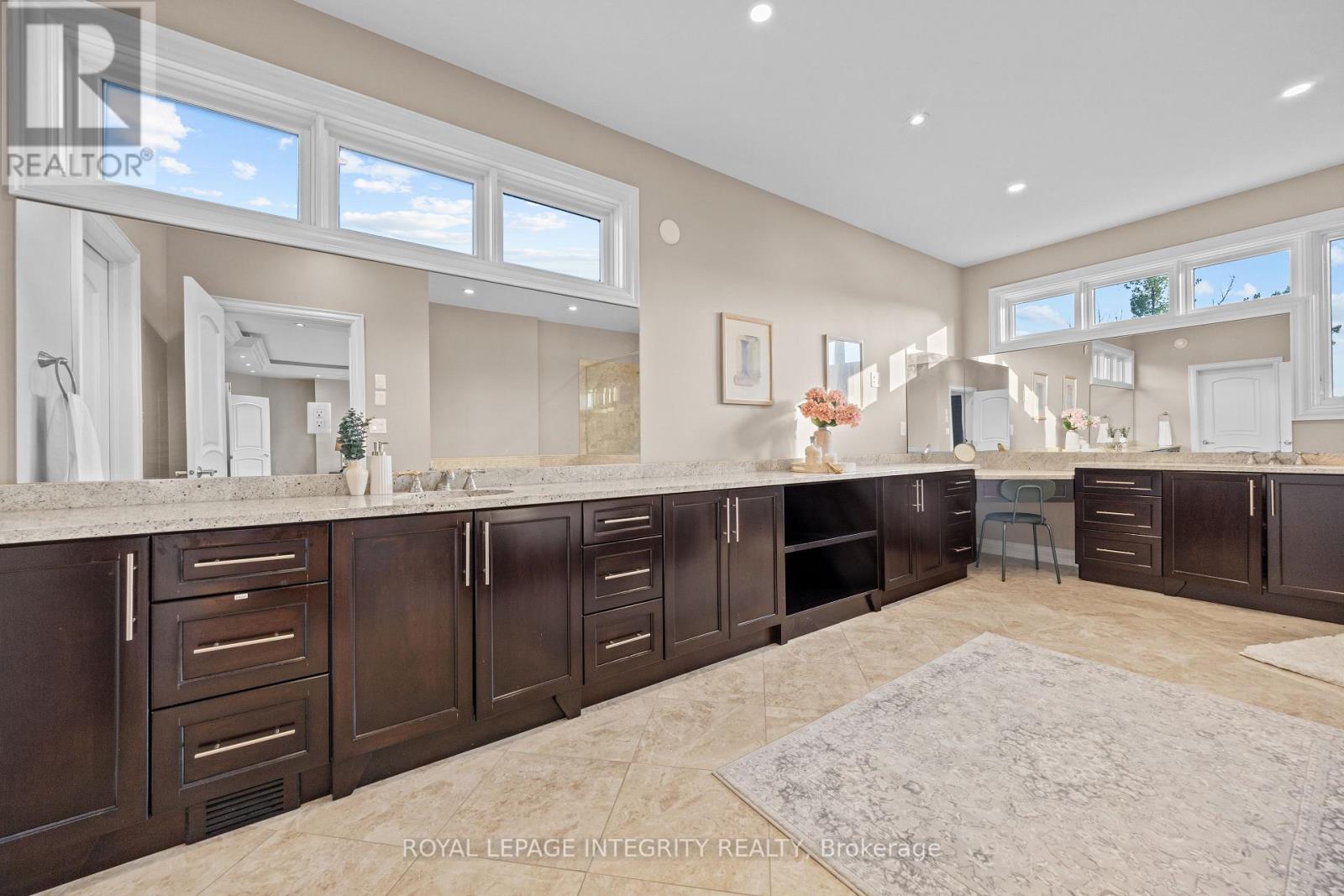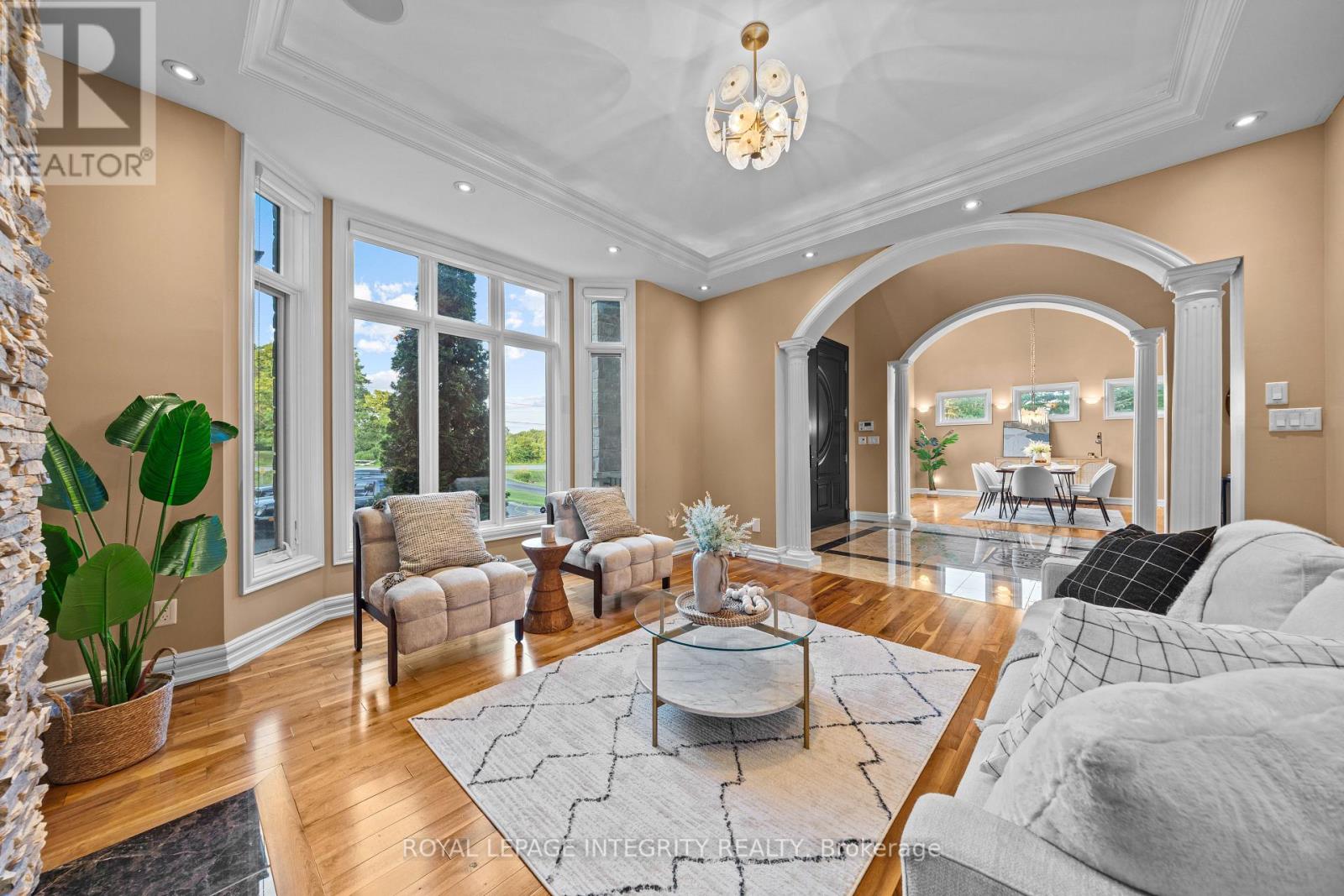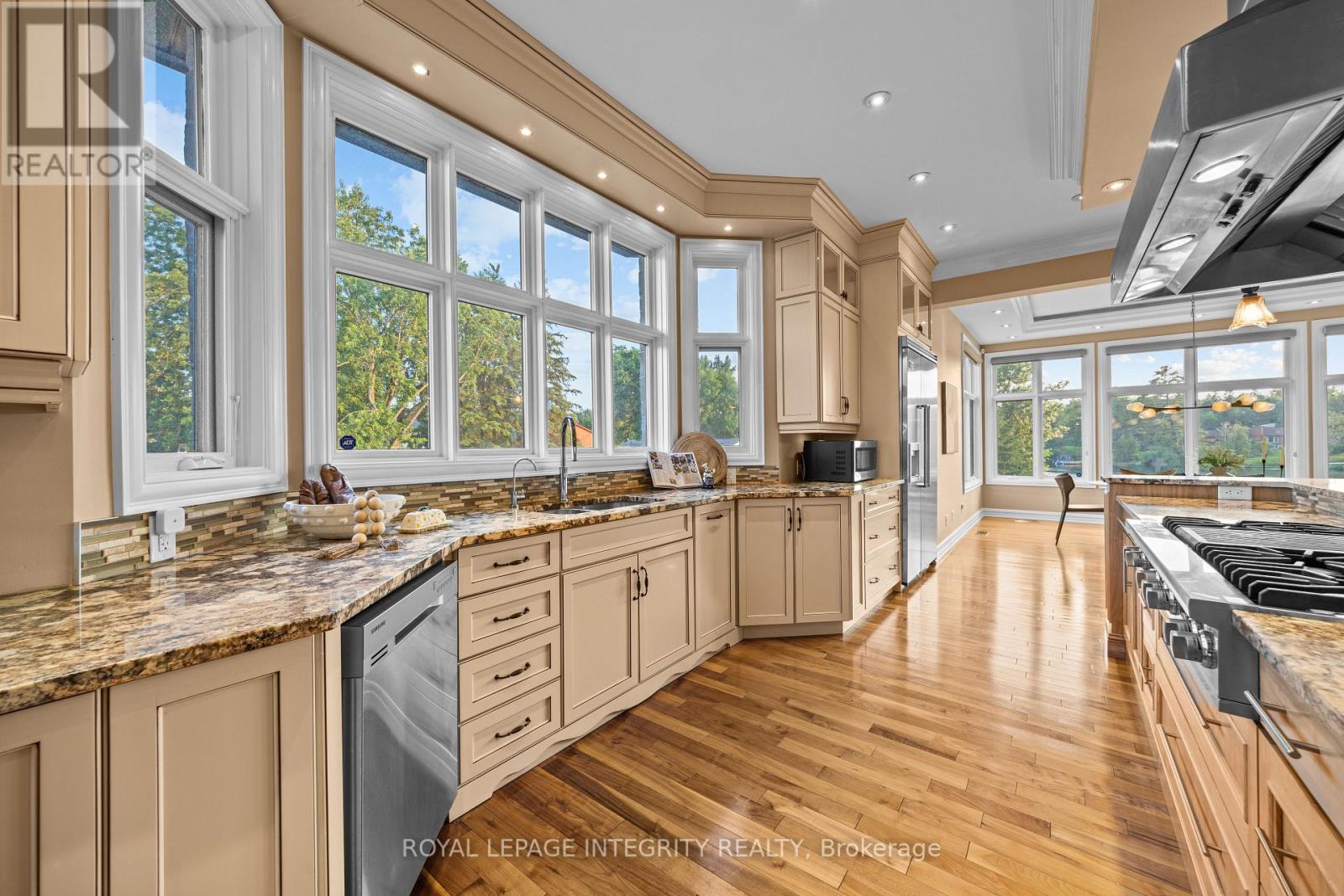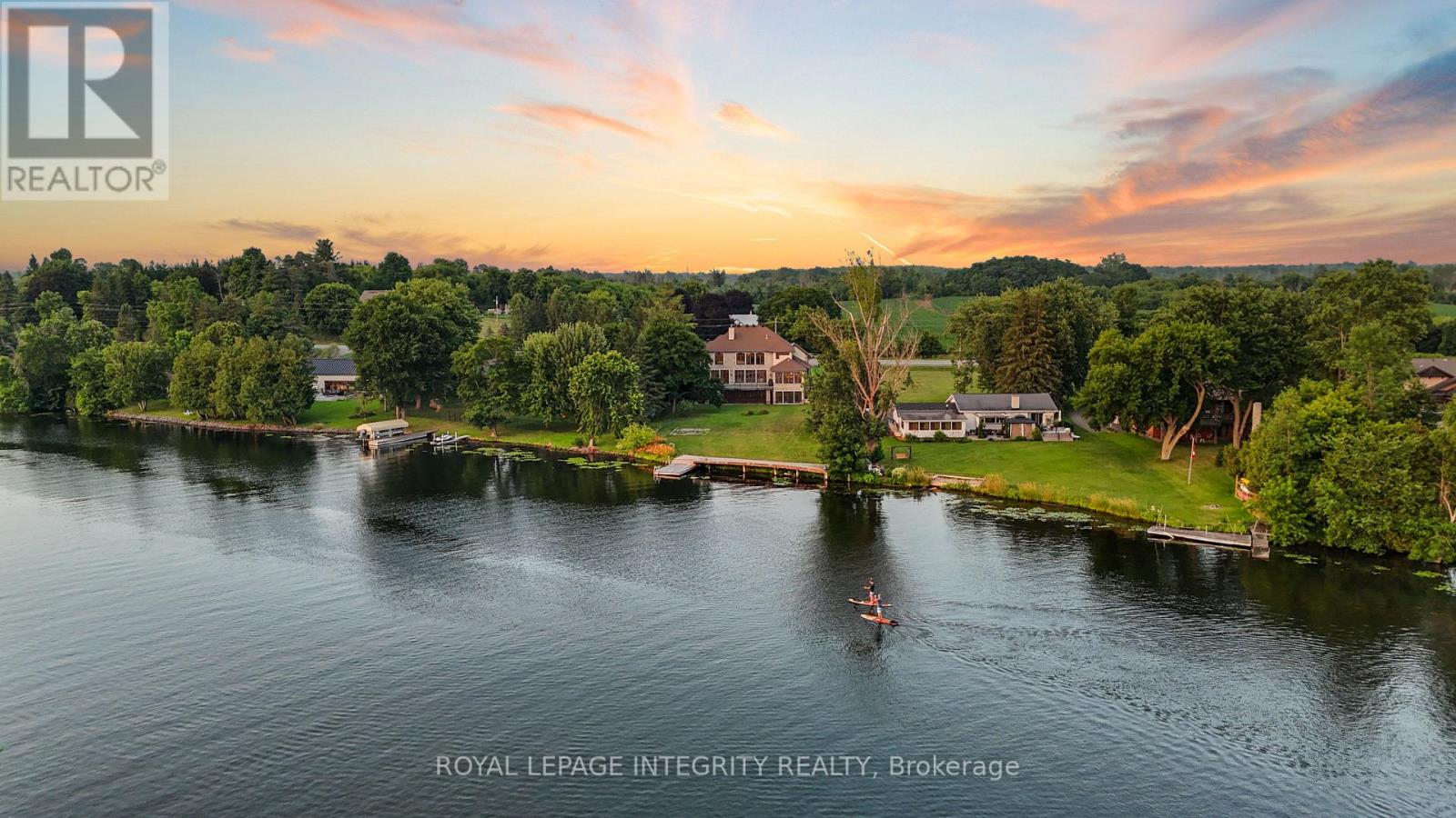 Perched along the serene Rideau River, this magnificent Italian-style villa seamlessly blends timeless elegance with modern luxury. Spanning over 7,400 sq. ft. of meticulously crafted living space, the residence delights at every turn with breathtaking river views, exquisite craftsmanship, and luxurious amenities. Beyond the dramatic 20-foot marble foyer that makes an unforgettable first impression, the home unfolds with graceful elegance. Soaring 10-foot ceilings and rich hardwood flooring flow throughout the main level, while multiple rooms showcase exquisite tray ceilings with recessed lighting, creating an ambiance of refined warmth. The formal dining room impresses with its 14-foot arched ceiling and stunning arched window that fills the space with natural light while framing picturesque outdoor views. The gourmet kitchen features a 13-foot granite island, top-tier Viking appliances, and custom walnut and Pashmina White cabinetry, complemented by a walk-in pantry for effortless entertaining. The adjoining breakfast area and family room bathe in natural light and offer panoramic water views, enhanced by a convenient wet bar and rough-in elevator. The main floor also includes a spacious executive office with private balcony access, along with a full bathroom that doubles as a guest suite. Upstairs, four bedroom suites each boast generous walk-in closets and spa-like Ensuite offers a massage shower & granite counter tops. The walkout basement serves as a versatile retreat, featuring high ceilings, oversized windows, a fifth bedroom, and a full bath. Enjoy whole-home indoor & outdoor audio system. Outside, the home's full stone façade exudes sophistication, while the expansive 650 sq. ft. balcony and private dock invite you to enjoy the breathtaking riverfront setting. Every detail of this exceptional residence has been thoughtfully designed to deliver an extraordinary living experience. (id:2469)